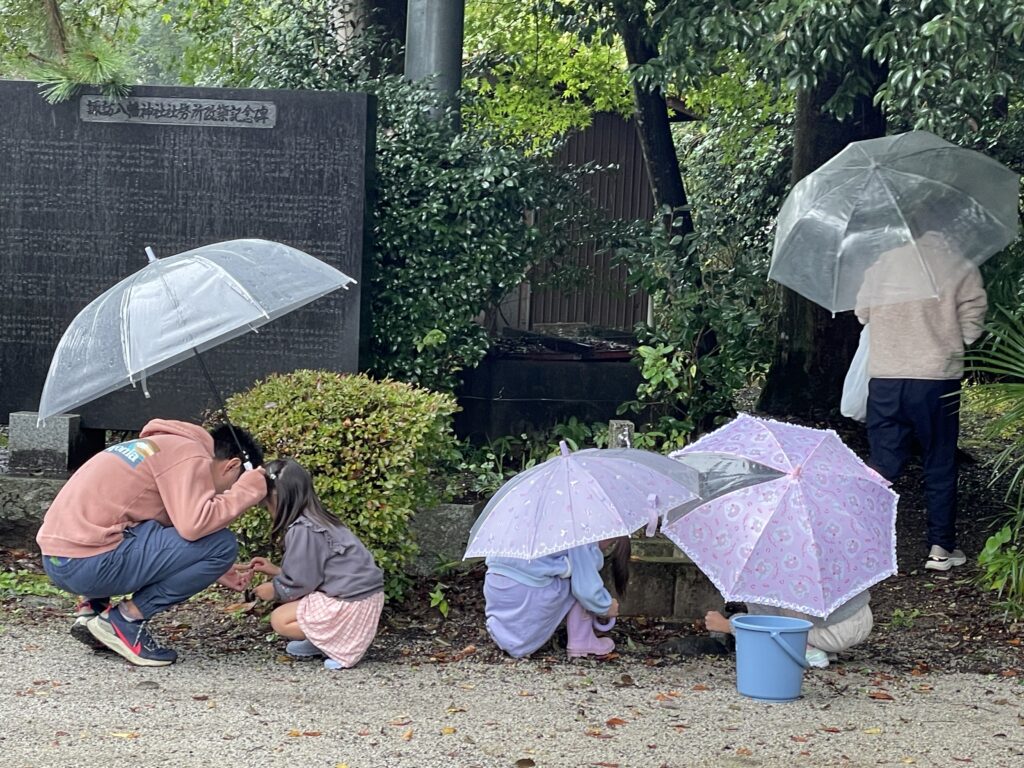 会場の周辺でどんぐり探し。